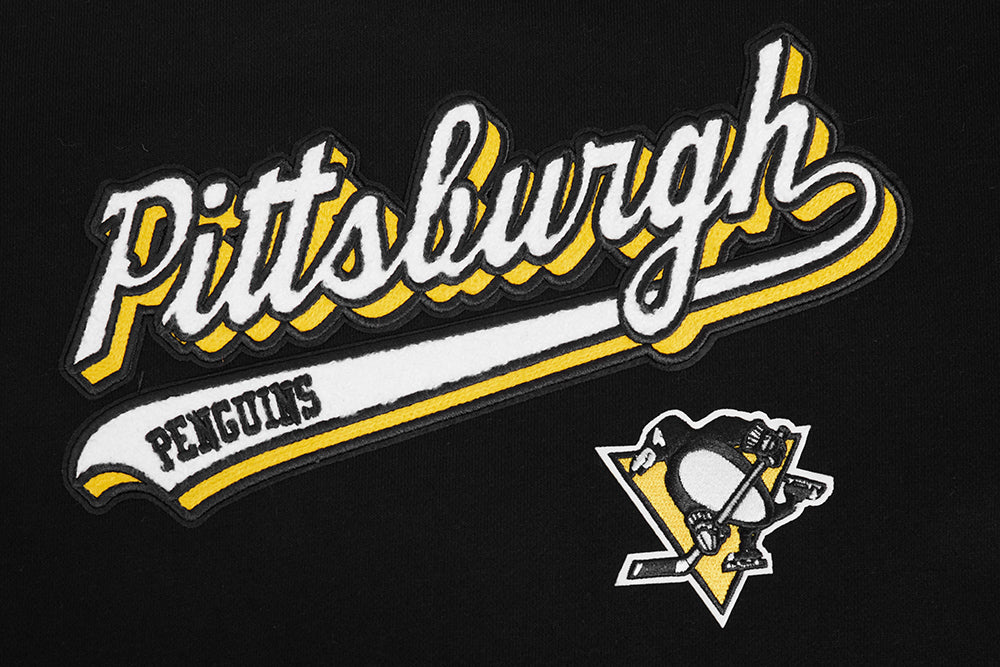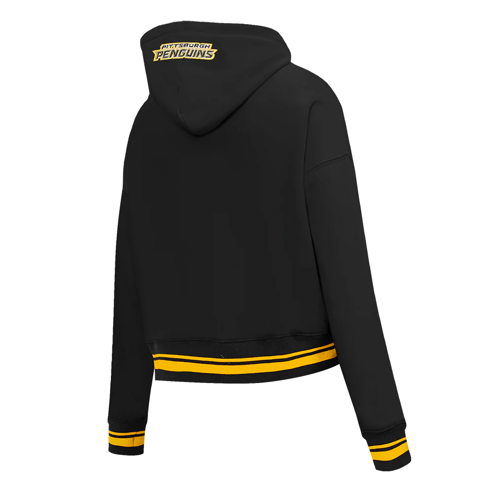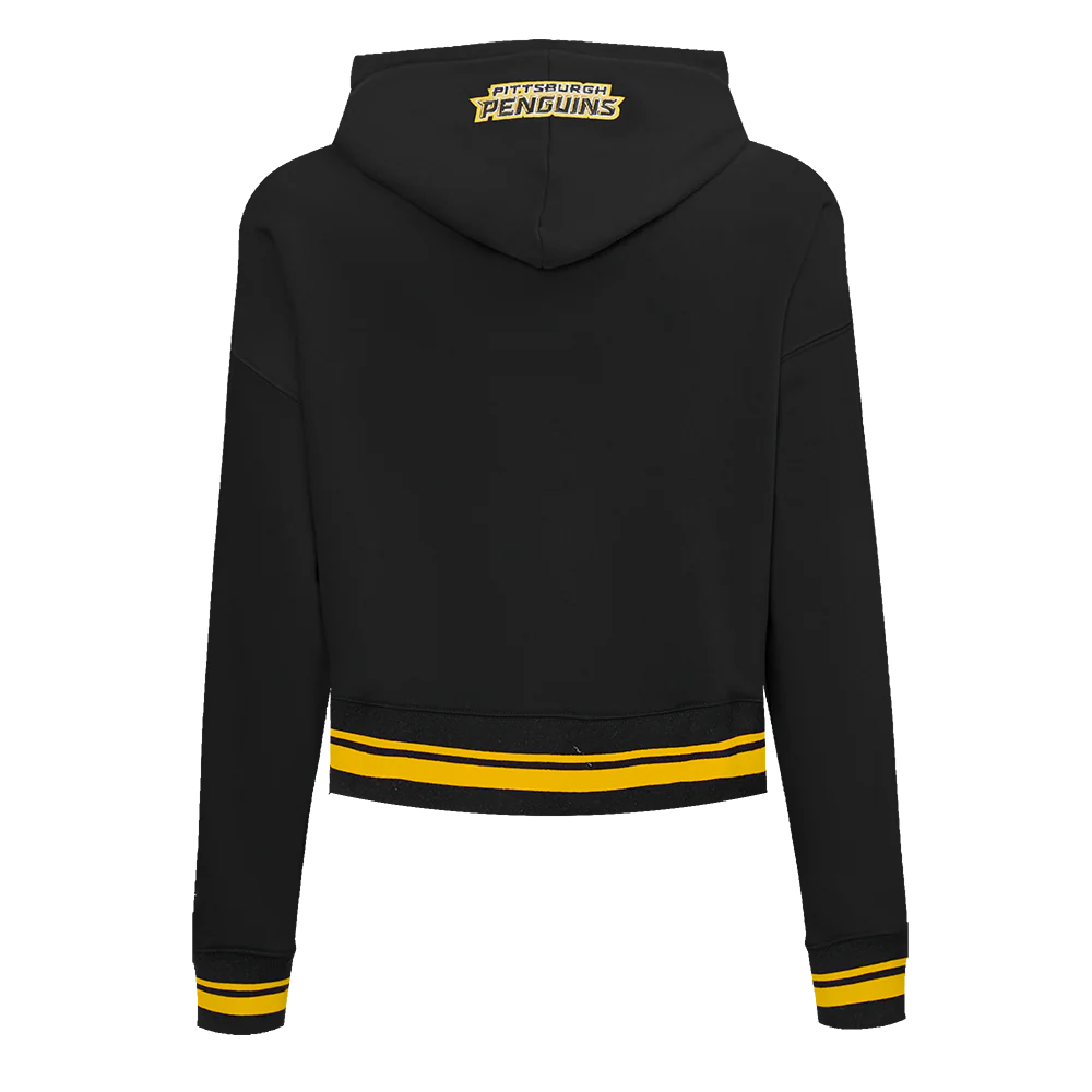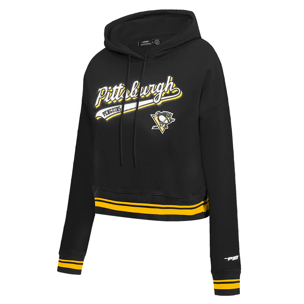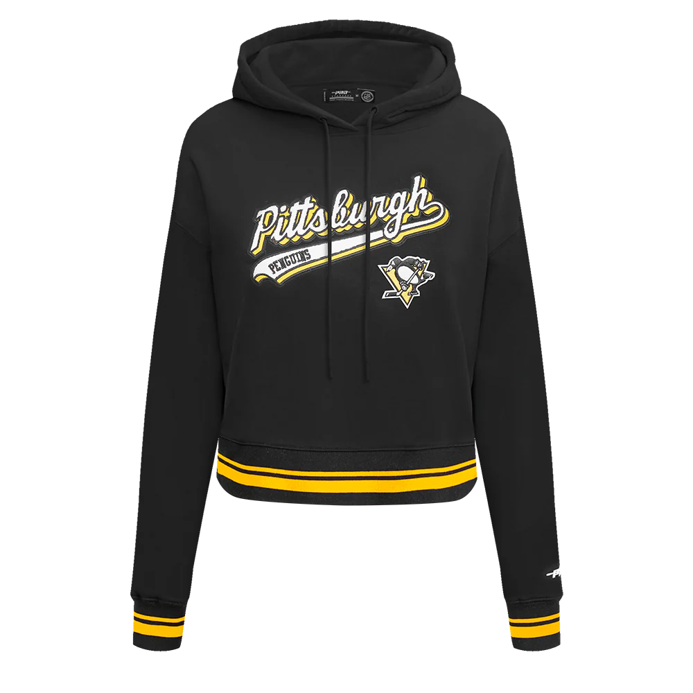 PITTSBURGH PENGUINS SCRIPT TAIL WOMEN’S RIB FLEECE CROPPED PULLOVER HOODIE CLOTHING