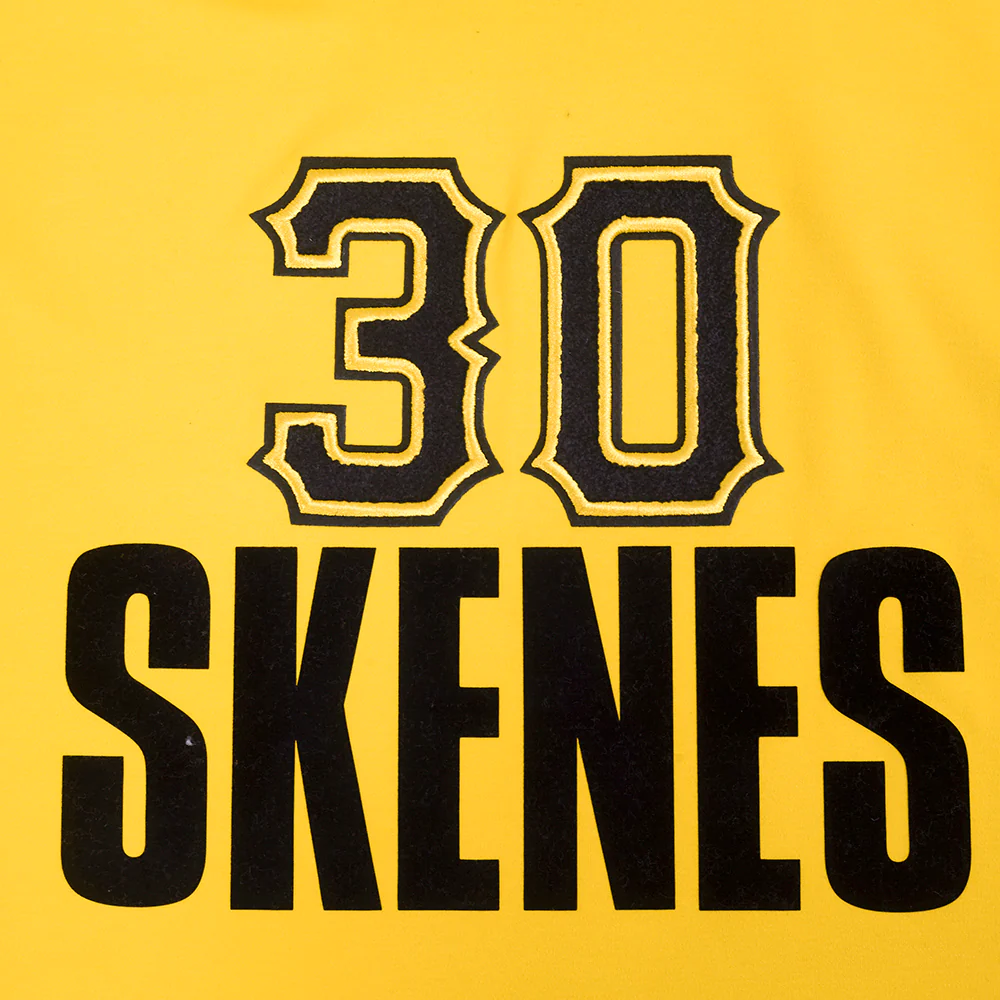 Pro Standard Pittsburgh Pirates Classic Player Name And Number Pullover Hoodie in yellow/black — a premium men’s MLB pullover hoodie from the Classic Player Name And Number collection featuring premium Pittsburgh Pirates team graphics.