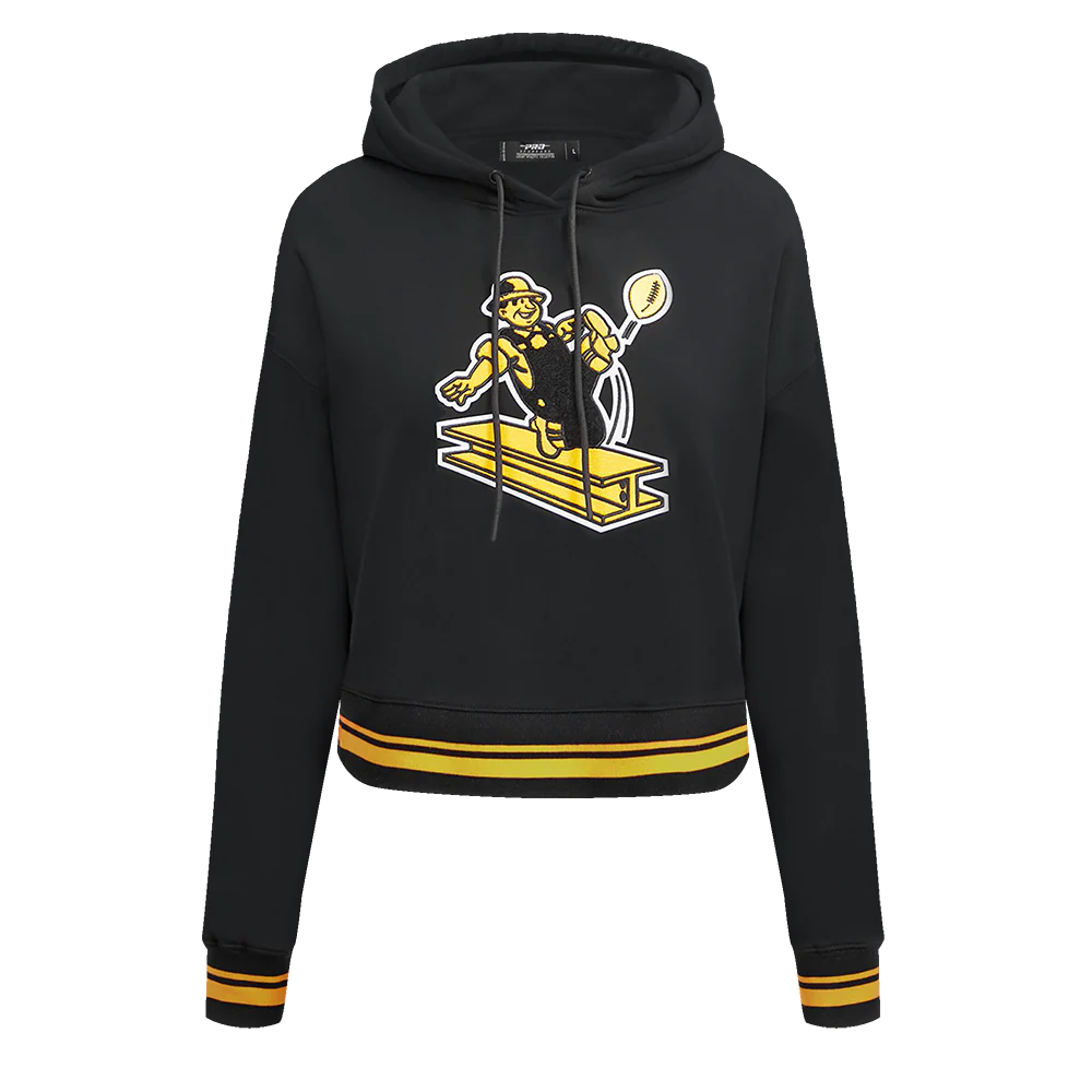 PITTSBURGH STEELERS BLK RETRO CLASSIC WOMEN’S CROPPED PULLOVER HOODIE