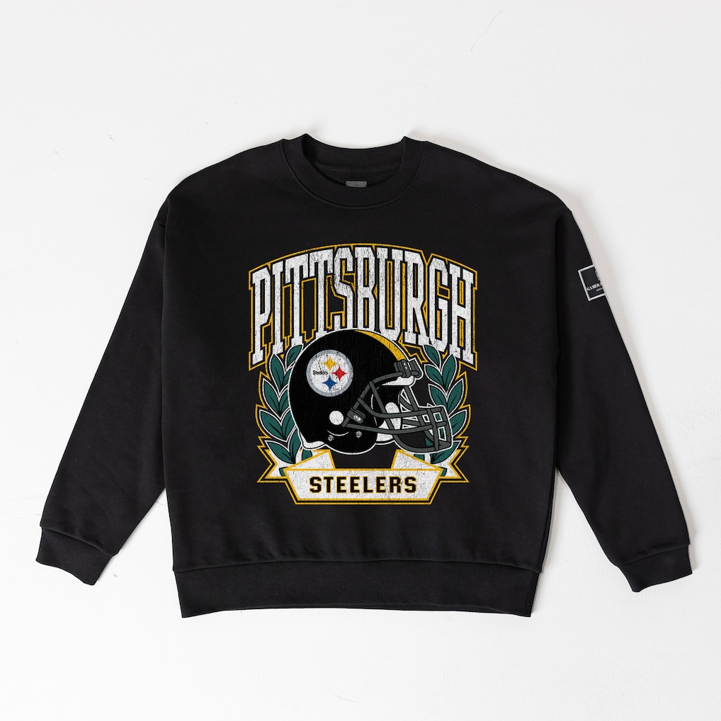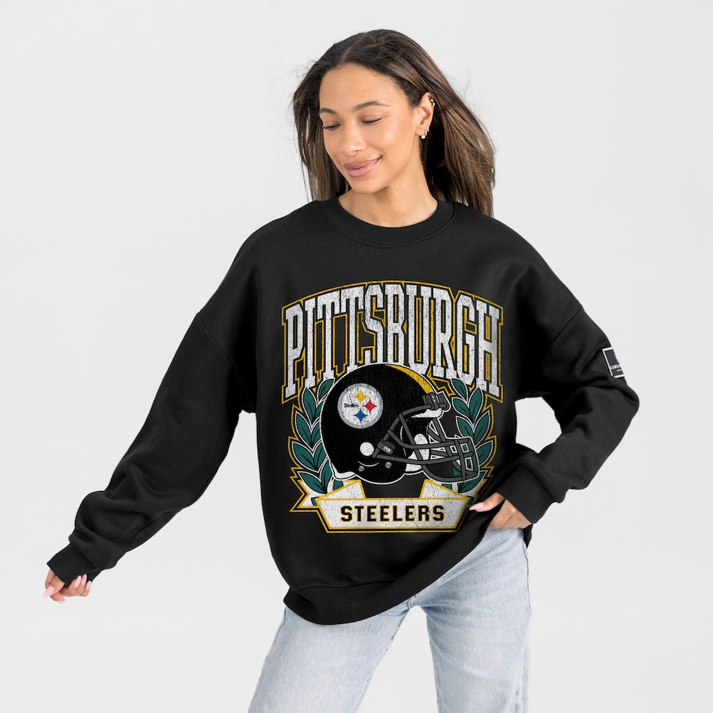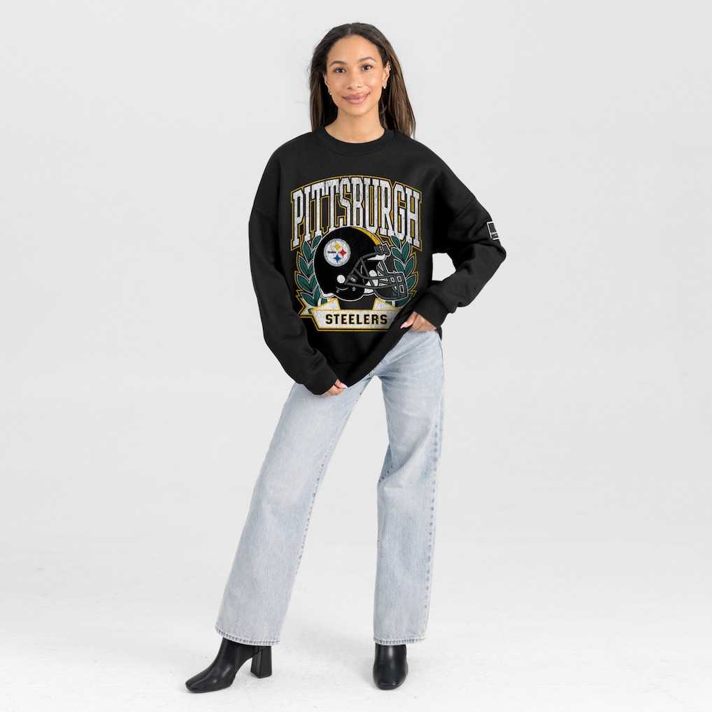 Pittsburgh Steelers Gameday Couture Women’s Oversized Victory Lane Black Label Premium Fleece Sweatshirt – Black Clothing