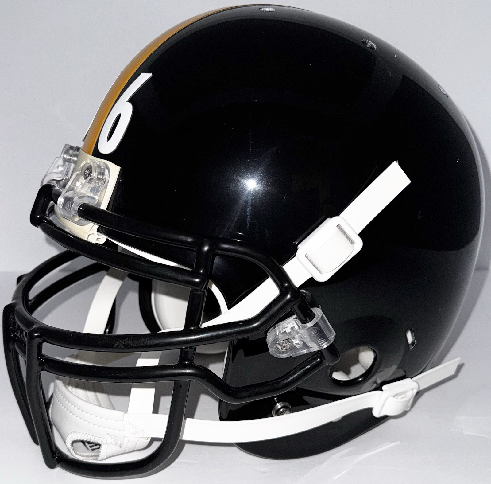 INSTANT CONVERSATION PIECE. This is an absolutely beautiful helmet. Vintage, Early 2000’s Schutt On Field Authentic Helmet Autographed by Pittsburgh Steelers Legend Jerome Bettis. Perfect, Bold, HUGE Signature in White Paint Marker.