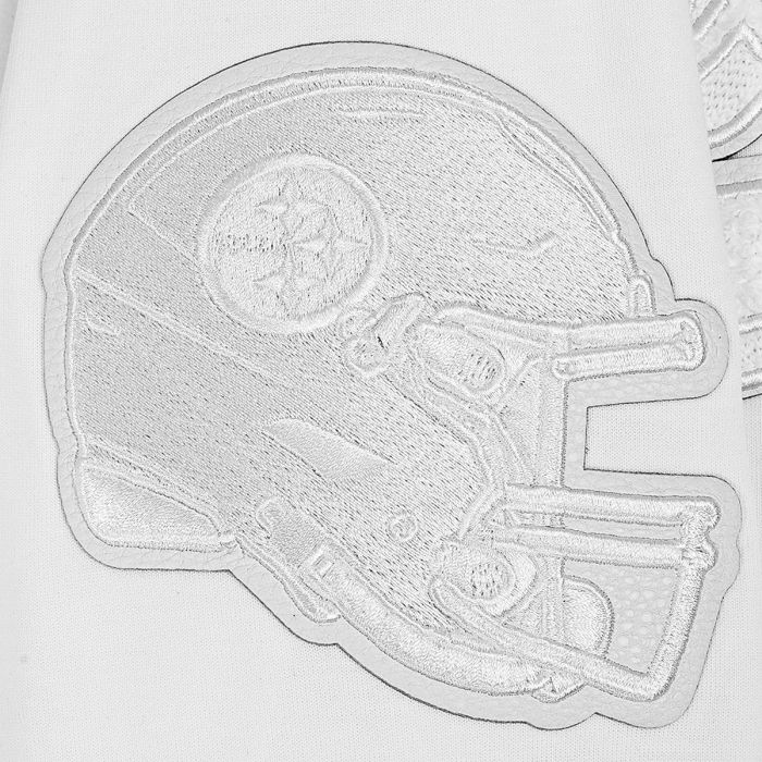 Show your Steelers style with the Pittsburgh Steelers Men’s Pro Standard White Out Pullover Hoodie. This white hoodie features a white 3D chenille city name paired with an embroidered white Pittsburgh Steelers logo on the front for a clean look. A matching chenille city abbreviation on the hood and Steelers helmet patch on the right sleeve complete the look. The front pouch pocket offers convenient storage for your everyday essentials. Get a subtle yet trendy look with the Pittsburgh Steelers Men’s Pro Standard White Out Pullover Hoodie.