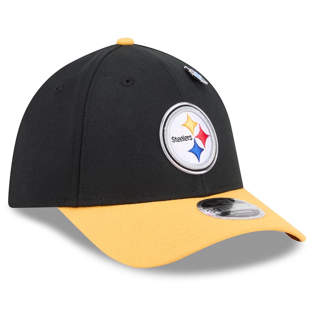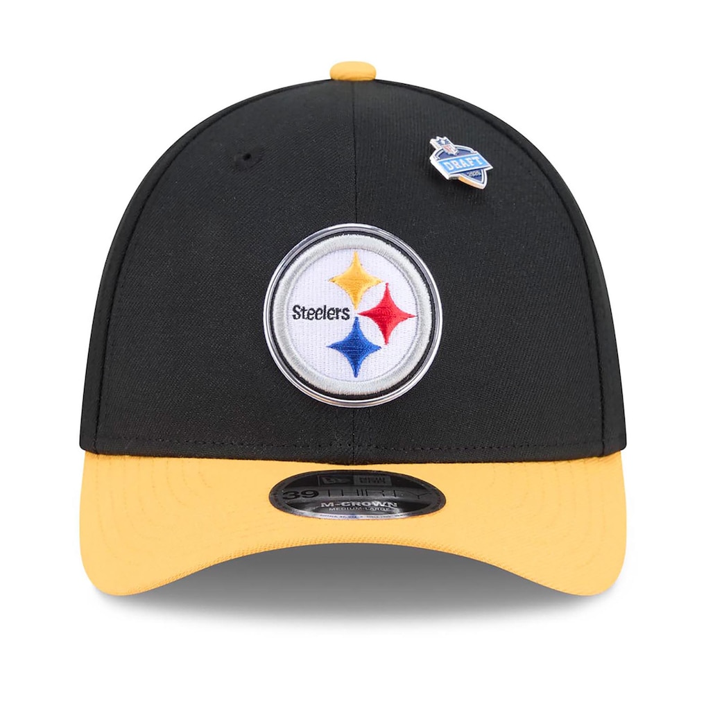Gear up for the future of Pittsburgh Steelers football with the 2026 NFL Draft 39THIRTY M-Crown Flex Hat. This New Era hat features an embroidered team logo with a metallic-effect outline on the crown and a removable 2026 NFL Draft pin to commemorate the excitement of draft day. Designed for a comfortable fit, the M-Crown has a semi-full shape that sits higher than the original 39THIRTY for a statement-worthy silhouette. With its two-tone design and team-themed lining on the front panels, this hat is a stylish way to represent the Pittsburgh Steelers.